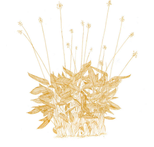 มีานวลอมน้ำตาลอ่อน แต่ละช่อมีช่อดอกย่อย 15-20 ช่อ โค้งงอได้ง่าย ช่อดอกย่อยมีดอกย่อยจำนวนมาก